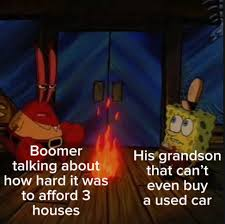 >>217370006OK well I didn't know we were talking about a fictional satirical film from 30 years ago. Sorry that you haven't launched yet but again, an apartment with some junk in it isn't exactly the important part of the human experience. I only rent my home so--I do feel your pain. But on the other end of "I can finally move out" is about an 100K/yr middleground of still not really being able to get a foothold, even in a normal place. I'll seethe about boomers with the rest of em and the best of em but I don't think that boomers at large are as vampiric as some people in here are making them out to be. They had a lot of opportunities to make enough money to own homes and buy cars etc etc. We don't. That's an issue with the ruling class, who typically skew old, but not all of our idiot grandparents are Warren Buffet.