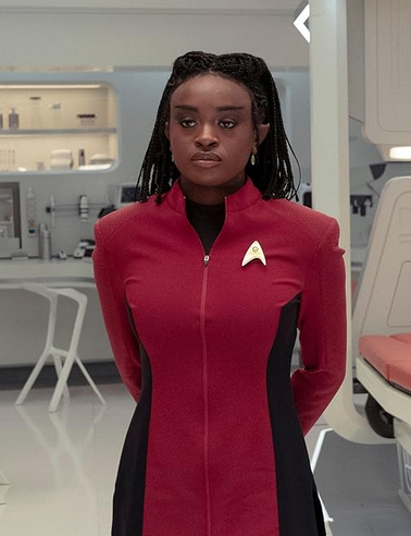 The one on the left is in strange new worlds. Shes the actress. You'll see her out of the uniform. She's smoke show