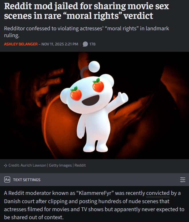 Reposting nude scenes is abuse.>As TorrentFreak reported, dozens of actresses had complained about the mod’s sub-reddit, “SeDetForPlottet” (WatchItForthePlot), with some feeling “molested or abused.”