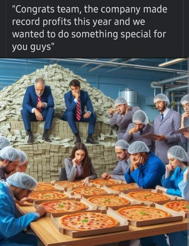 >>217400467Greed trickles down. Now your corner Mom and Pop take more of your pie to survive, and still, everything is fine.