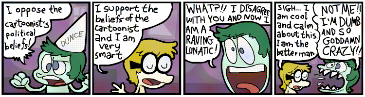 >>217422325>>217422524>wow, my self insert is so much more intelligent and free-thinking compared to the strawman i made upAre you underage?>xkcd comicMy bad.