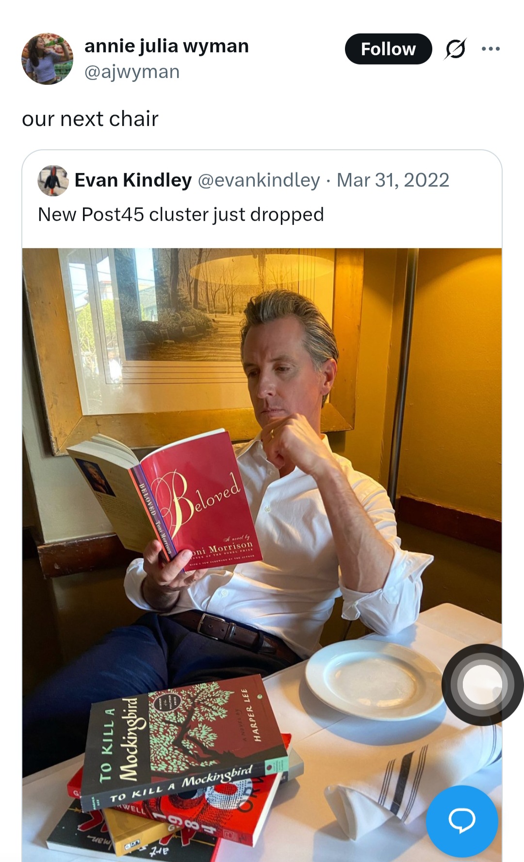 >>217432796Annie Julia Wyman endorses Gavin Newscum for President https://x.com/ajwyman/status/1509419815928094720