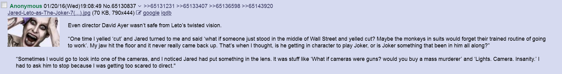 >>217460251Leto trolled them all and they deserved it, he was the true Joker after all