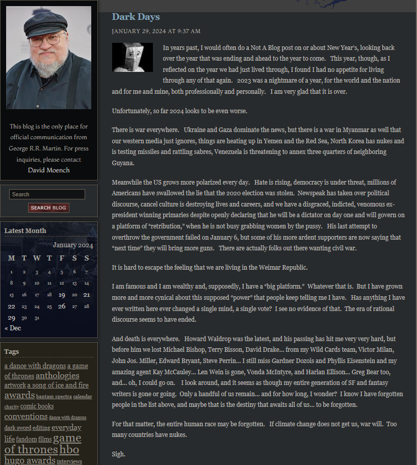>>217467348>George, please write the book.>We've just greenlit House of the Dragon>George, please write>Elden Ring is coming to a Playstation near you>George, please>Trump is a threat to our democracy>George>I don't write about poopy