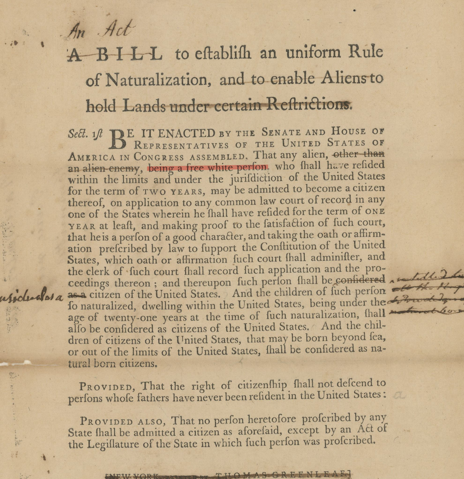>>217567049immigration and naturalization are not the same thing just fyi. When this law was in effect the US had 100% open borders, and there were no visas. Anyone who wanted to come to America had a presumptive right to come and settle here. It was only citizenship that was restricted to free white persons of good moral character who had lived in the country for 2 years, and resided in a district for 1 year. Being a resident alien wasn't restricted at all.