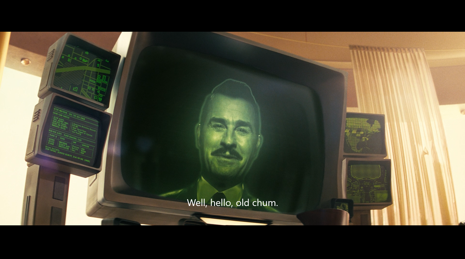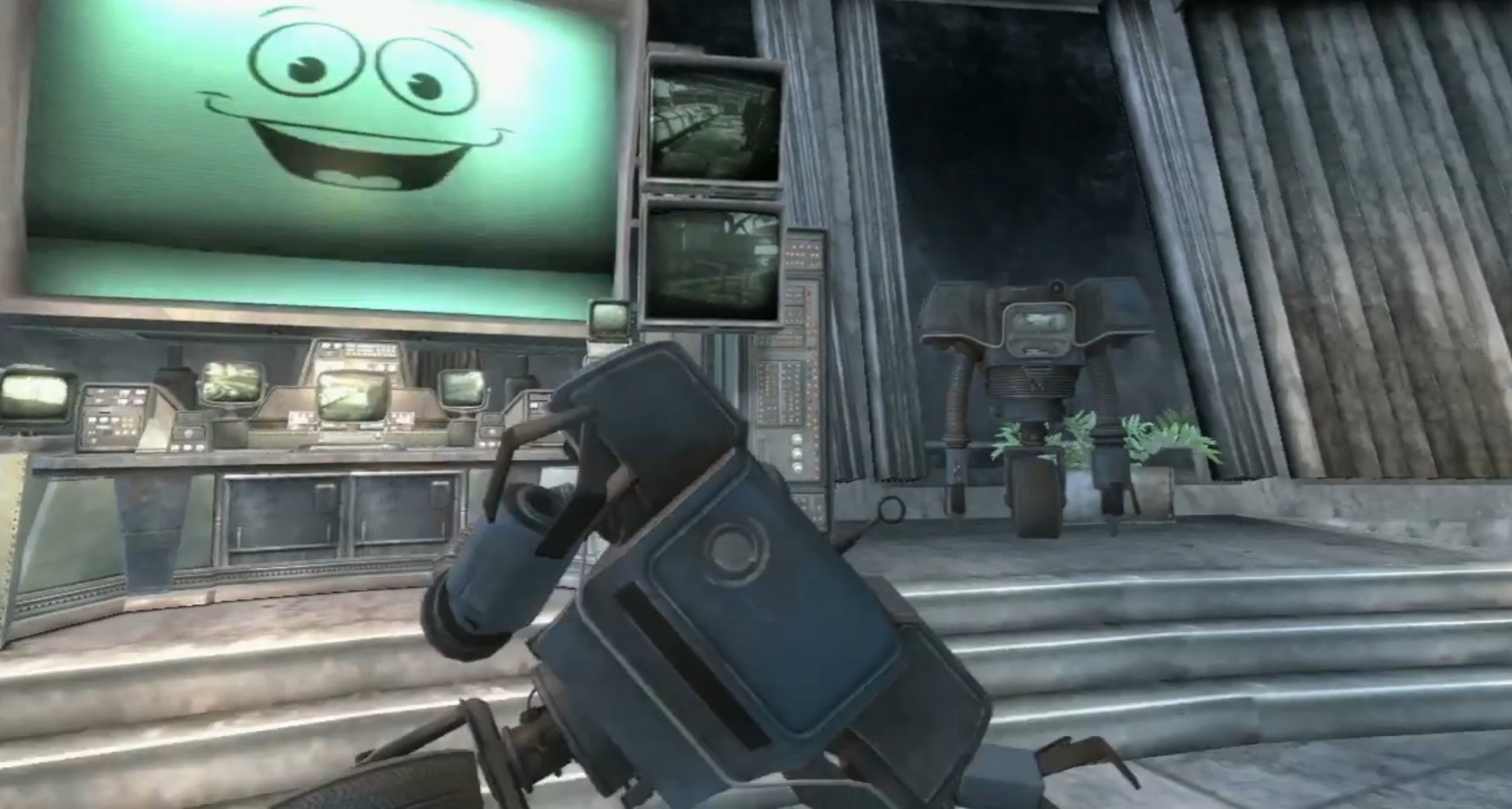 the knocked out securitron next to house's monitor looks like yes man's abandoned body in the wildcard ending, but that can't be compatible with House still being alive