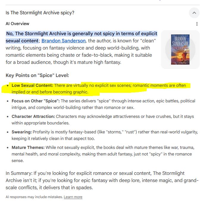 >>217641549>>217641482Stormlight is the most embarassing cringe fiction ever written. A true fucking endurance test. Truly nonsense of the most Reddit tier. Sanderson means well but he's a fucking imbecile and a retard.