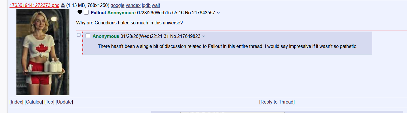>>217643557Same reason they're hated so much in this oneOk realistically though Americans were probably inundated with anti-Canadian propaganda from the period leading up to and throughout the occupation, to reduce the internal political/morale cost of the invasion