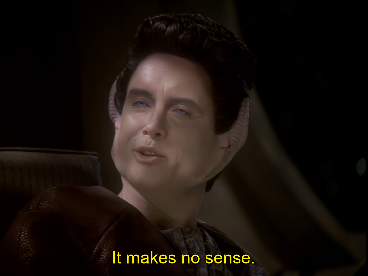 >>217653725Am I imagining things or is the guy hired to play an alien that feels no emotion just constantly looking disgusted and annoyedHe looks pissed off. The expression on his face looks neutral but he looks pissed off, like someone working a job they hate.