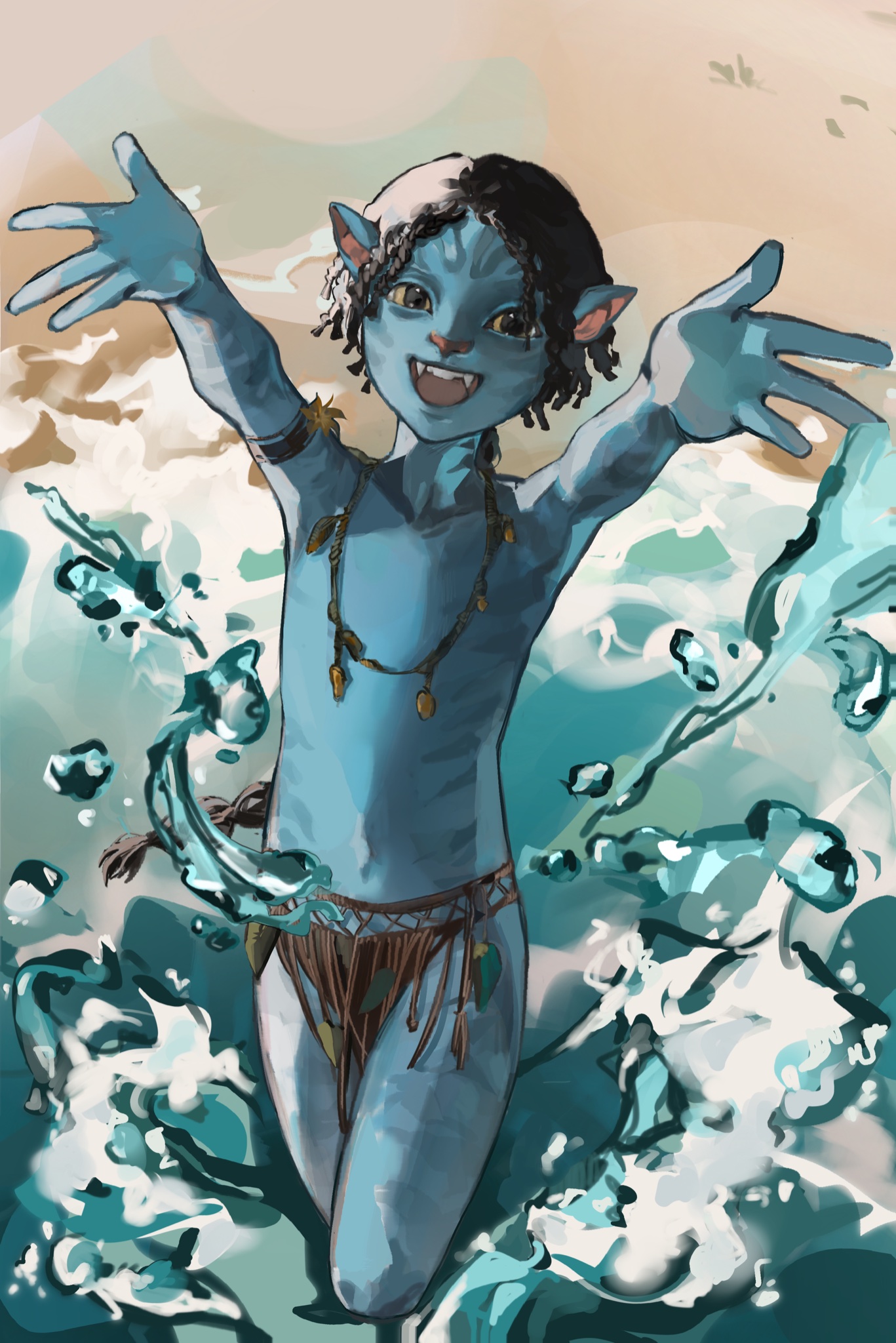 Strangely, Lo'ak and Neteyam have some sort of strong accents when Jake and Kiri don't. It seems to vary even within the same immediately family