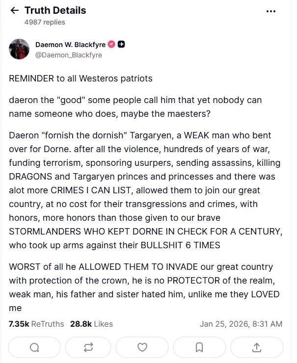 That’s Aegon Targaryen the Sixth of His Name to you bitch