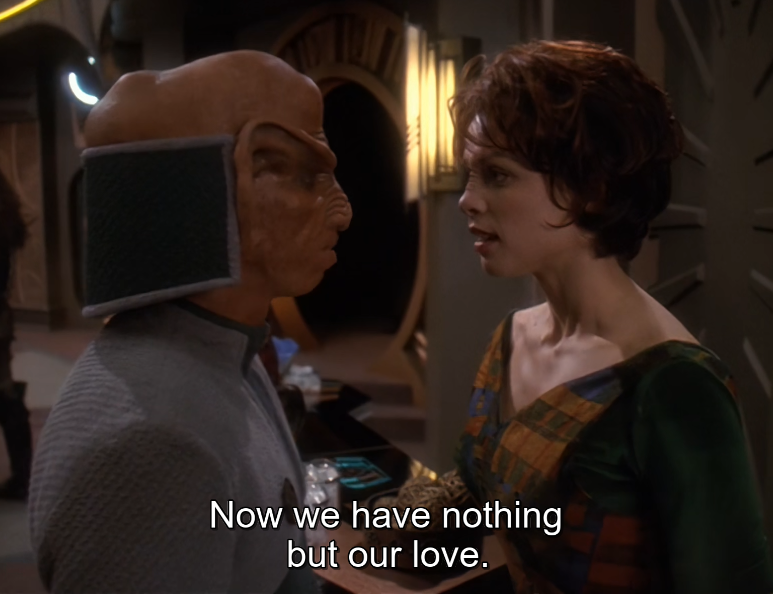 Banging the son of the Emissary has to to be the goal of a lot of Bajorian broads. Or more pragmatically, as a Dabo girl with a shitty boss. Banging the son of the dude who bosses your boss around can't hurt.