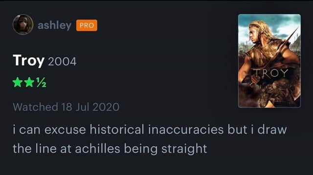 >I'm a gigantic piece of shit but at least I will be famous for itBetween Narcissu-I mean, Achilles, Paris being a complete retard and his father being a fucking mongoloid ignoring the war so he could beg the gods for help, the only decent man in this entire movie is Hector, and of course he gets a humiliating death for being honorable.