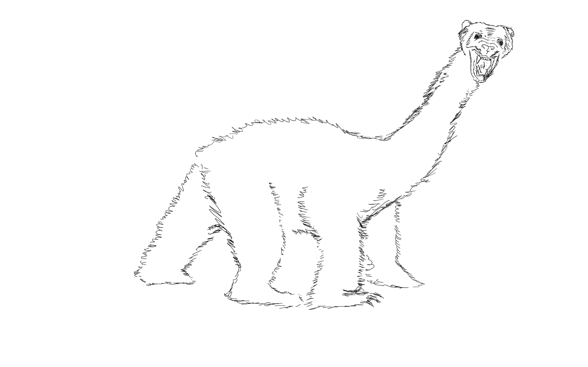 >>217788511Unironically more horrorful than the one in the TV show. But when I read book, I imagined it's body more muscular with big shoulders like a bull. It also needs to look more bipedal/primate-ish. This one looks too much like a dogbear. The creature in your drawing anon wouldn't be able to climb well, like when it hunted Blanky. Or rise from the snow in nanoseconds. The neck should also be retractable and its face is pretty much a upside down triangle with dark round shark eyes. If you make those adjustments then it's exactly how I imagined it based on the book's description