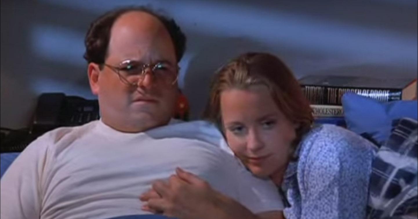 Funniest sitcom setup ever is George dating a girl who seems to be completely unattracted and refuses to get undressed in front of him and they’re all coping about how maybe she’s just shy, then they go to a vacation home and as soon as George is gone his gf just starts walking around topless in front of everyone else kek