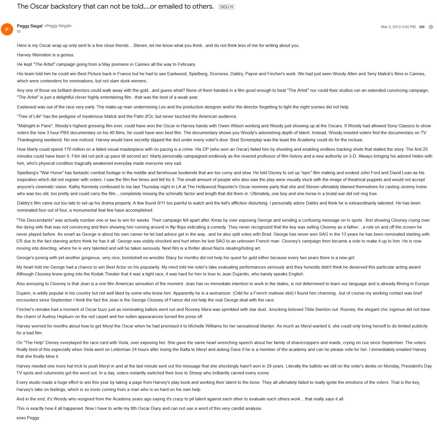 2012 Oscars films review by Peggy Siegal is worth a read