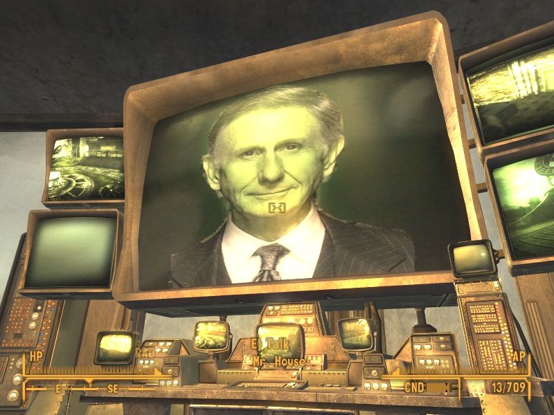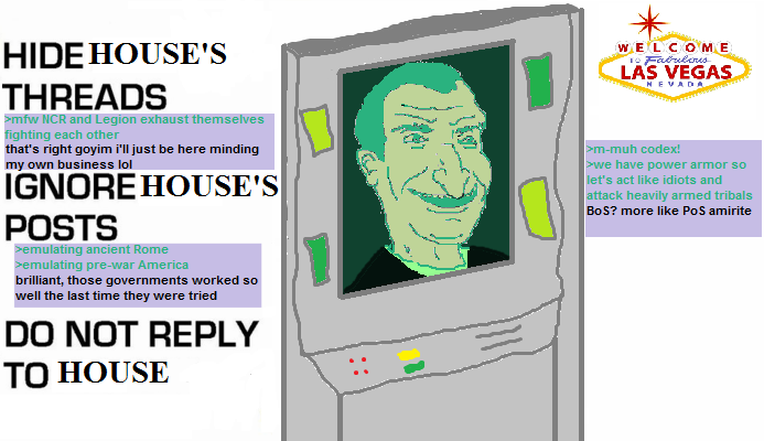 >>217774627>Ghoul: Well Mr. House we did it. We did what you wanted. This fixes everything right?>Mr House: Well. heheheh. About that....>screen flips over to Yes-Man voiced by Dave Foley