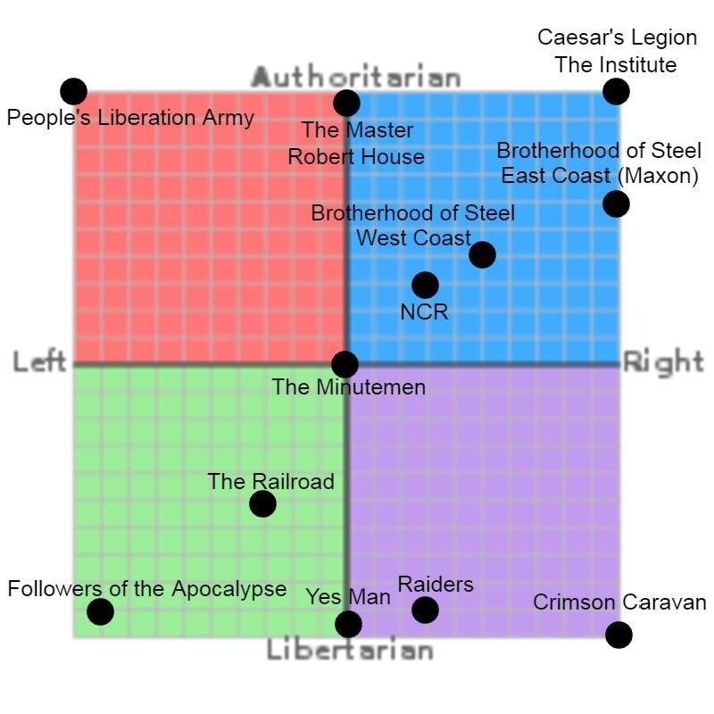 >>217775921NCR is the leftoid choiceLegion is the chud choiceIndependence/Yes Man is the lolbert choiceHouse is the reddit "dude I fuckin love science lmao" choice