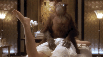 Imagine being Sam in that scene and having to be like, "Ha ha, I'm giving Faye Dunaway a massage as a joke cause she doesn't know I'm monke and I'm getting no pleasure out of this, neither my character Dunston nor the real me" Like seriously, imagine having to be Sam and not only straddle a naked Faye Dunaway flaunting her lithe body and soft skin under you, and rub with restraint, take after take, while you perfect the farce and stop yourself from getting too handsy. You're a trained Hollywood ape and maybe your trainer watches her nude scenes in Chinatown, Barfly with you like you don't even know what you're watching. You've seen her sex scene with Bill Holden and know you could outdo him, but as you hear Faye suggestively moan in pleasure the Oscar-winning actress manufactures for comedy sake that she's only cooing "Oh that's just how I like it" as you slap her buttocks because she's paying a part, pretending to be Mrs. Dubrow, only reacting with such unmistakably sexual euphoria because she thinks you're a professional masseuse stud, calling you "William" not Sam, not even Dunston, just "William", because she’d never see a monke as any kind of potential lover, and she'll cackle and robe up, give you a condescending pat and joke "He's got softer hands than Warren Beatty!", all in jest, dismissing you as a hairy prop in a kid's movie before you're sent back to the gawkers laughing at your masturbation you've had to endure your ENTIRE CAREER. Your callous ape fingers rub the forbidden fruit of the hairless human's bare back and all you want to do is flip her over and show her how virile and uncomic you really are. Then the director calls for another take you know you have an orangutan's strength and could rip the arms out of the sockets of everyone on set before the wrangler puts you down, but you play your part and endure it, because you're fucking Sam. Won’t lose your future Hollywood career over this. Just check in. Make a funny face and check in.