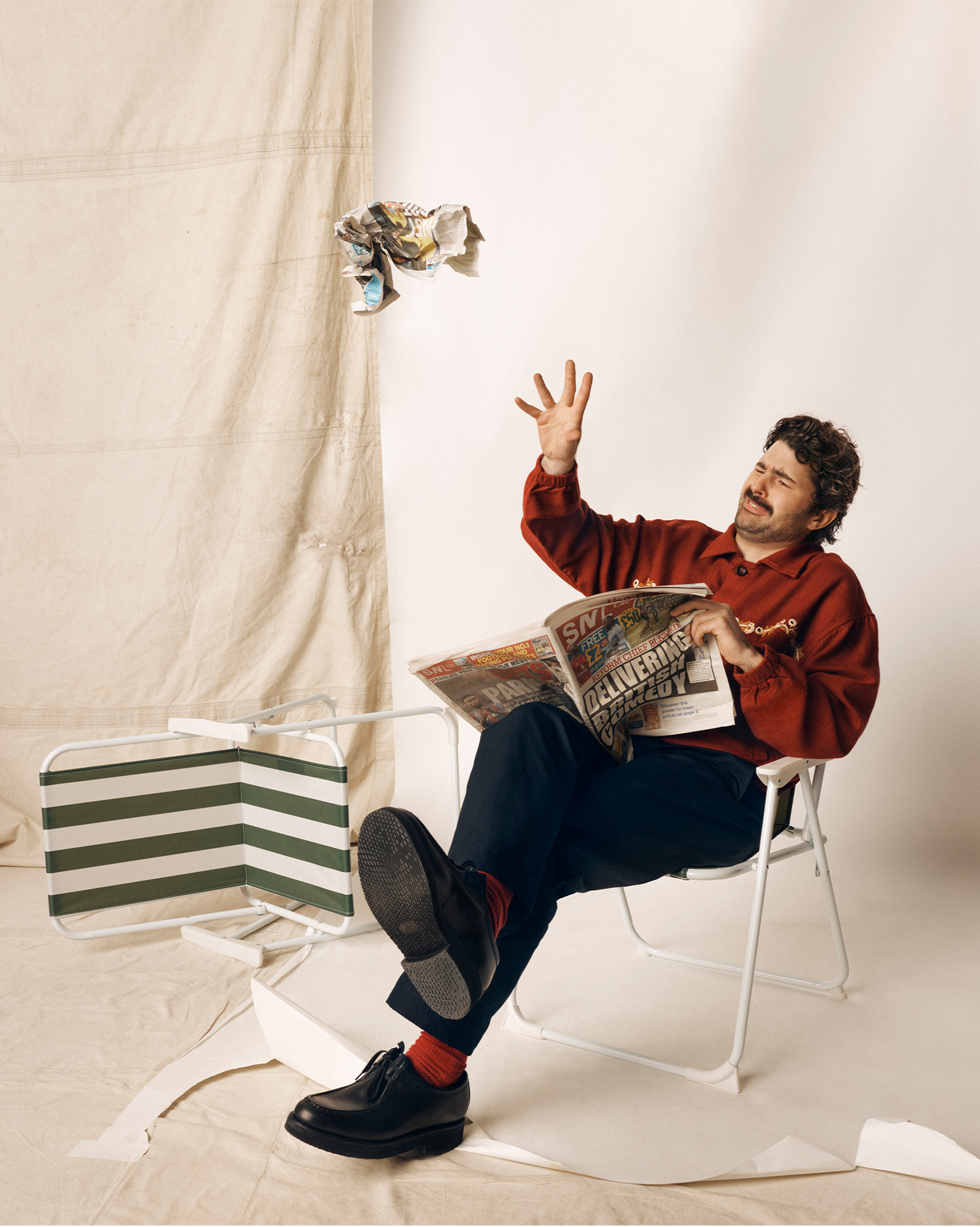 Jack Shep>Hometown: Bedfordshire>Credits: Wanting To Be Cool, Having To Be Funny (Comedy Night), Big Boys (Channel 4)>Comedy heroes: Tim Robinson and Patti Harrison>Why did you want to be part of the SNL UK cast?It’s just a completely unique show. To make a finished show in a week and then start all over again the next week is amazing. Being able to be in a room full of comedians being stupid and funny like this is a once in a lifetime opportunity.>What is your background in live performance or sketch comedy?I’d describe myself as a comic rather than a stand-up comedian. I do a bit of acting and writing too but basically, I’m always doing stupid shit which I think makes me primed for SNL.