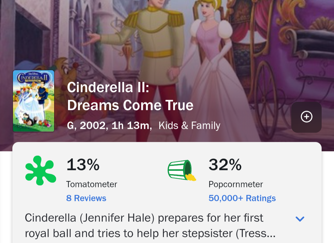 >>217783603>Is three actually good?Lady Tremaine steals the wand, goes back in time to steal the glass slipper so the prince marries Anastasia instead and Cindy has to fucking earn everything that was handed to her in the original timeline starting with breaking out of her basement, which she does by kicking ass. It's an action movie.