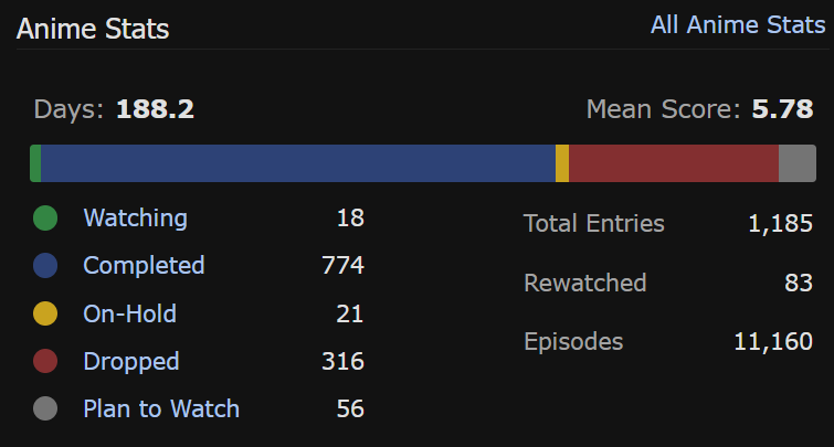>>217783301>psh, you haven't seen enough anime KID !>yes i have>WELL YOU'VE SEEN TOO MANY YOU LOSER !!!okay>>217783315i only rated a few shows so it's higher than it would normally be