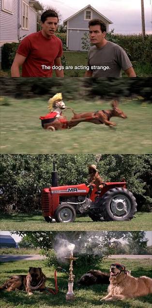 >>217784234The scene of Charles sheen walking out the house looking around parodyibg signs had become a meme now