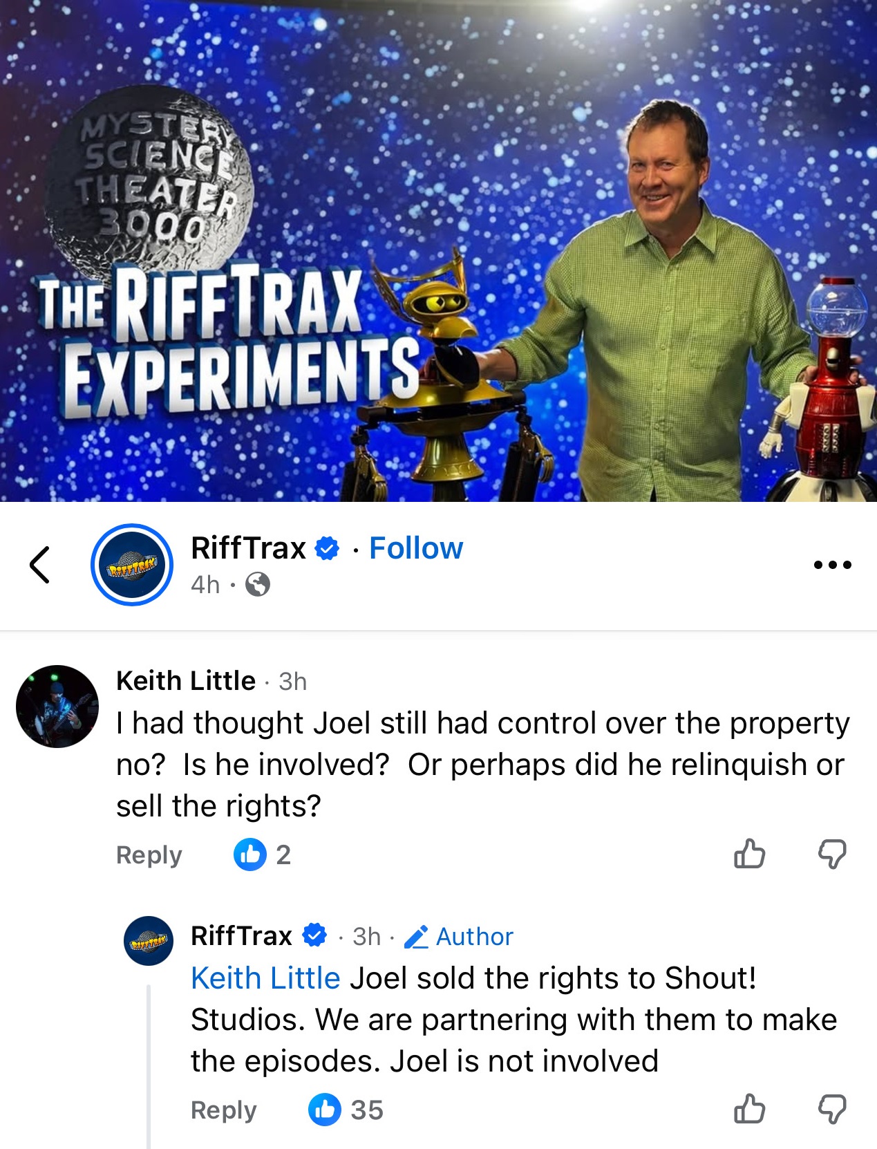 I never got the feeling that there was ever bad blood between Joel and Mike. I think Joel left the first time because he wanted to do other stuff and now he's handing the license over to someone he knows can do good with it after he took it as far as he could.