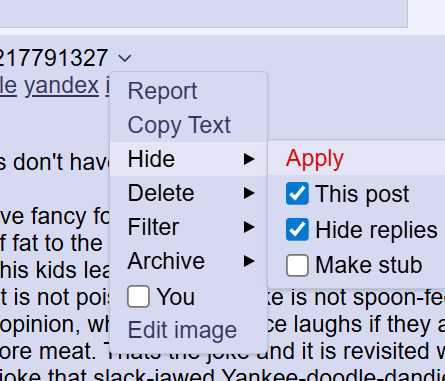 >>217790661Yankee-doodle-dandies don't have the mental capacity to understand sophisticated British humour.Guessing they don't have fancy food like pork or lamb chops in America, and thats why you didn't get the jokes. A pork chop is a cut of meat on the bone that has a layer of fat to the side of it, this is the bit Harry Hill claims his dad says was the best bit and that the meat part was poisonous, so he would eat the meat for his kids leaving them the fat. However, if you had an education youwould have known that this is not true and the fat is the worst part and the meat is not poisonous. The joke is not spoon-fed to the audience, like American stand-up comedy (where a comic doesn't actually tell jokes but states an opinion, which the audience laughs if they agree with) in British comedy the audience is expected to work out that Harry's father was duping his children to get more meat. Thats the joke and it is revisited with the pie-crust joke at the end (this is known ax a "call back" and gives structure to a stand up routine). A version of the joke that slack-jawed Yankee-doodle-dandies might understand would be something like this:>Howdy ya all! Pops used to say to us rugrats dat der best bit o' da hamburger was der pickle.>TOUCHDOWN!>an' dat der rest wuz poizin, includin' der sli-door. Sho he would be givin' uz kidz der pickle an bravly eatin' the rest himsel'.>He wuz a good man.>THREE CONE DRILL!