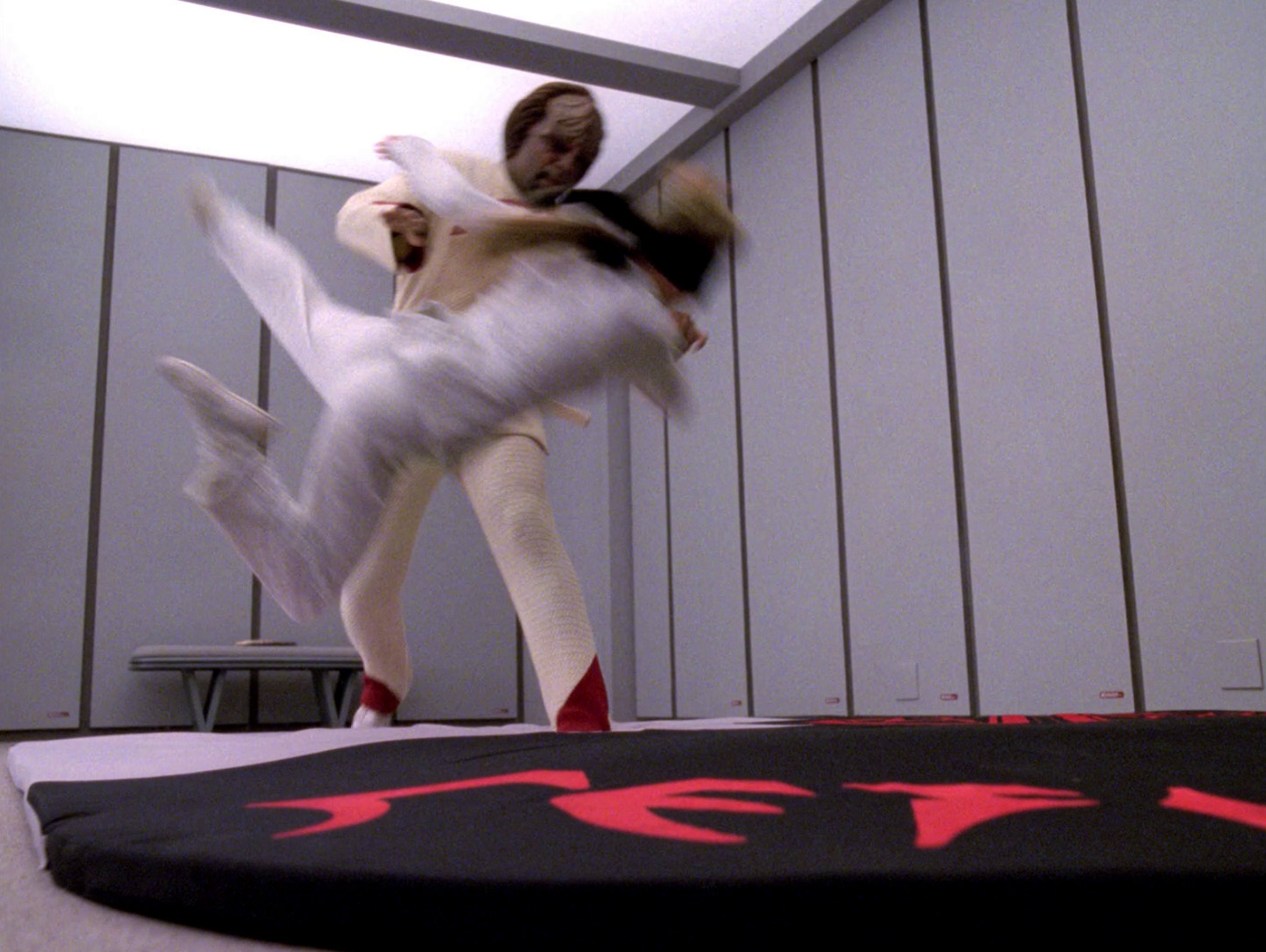 Yeah, and the cripple's in a wheelchair, not flopping about on the floor.