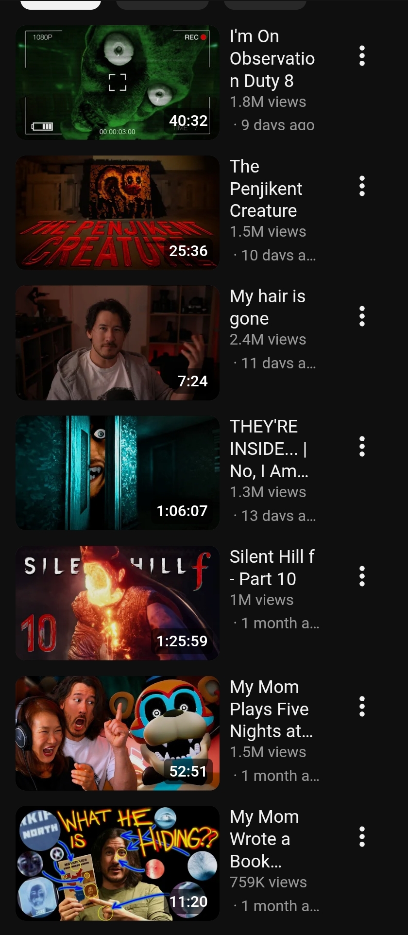 >>217805723>>217793682>>217794435>>217793507The 2 hours of this film felt like a needless directors cut or something. Literally everyone I know who saw it admitted to falling asleep at some point while watching it. Aren't horror films supposed to be suspenseful? Aka not be a a fucking snoozefest? The fact it was made by markiplier is the only redeeming quality of this movie, but I'd never rewatch or recommend it.