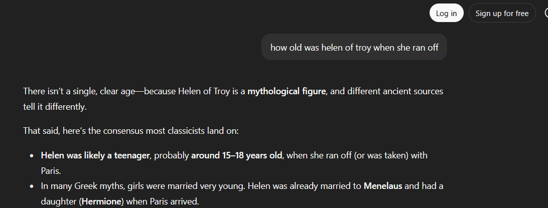 >>217794690Helen had a 9 year old daughter with Menelaus at the start of the war, meaning Helen was in her mid to late 20s.