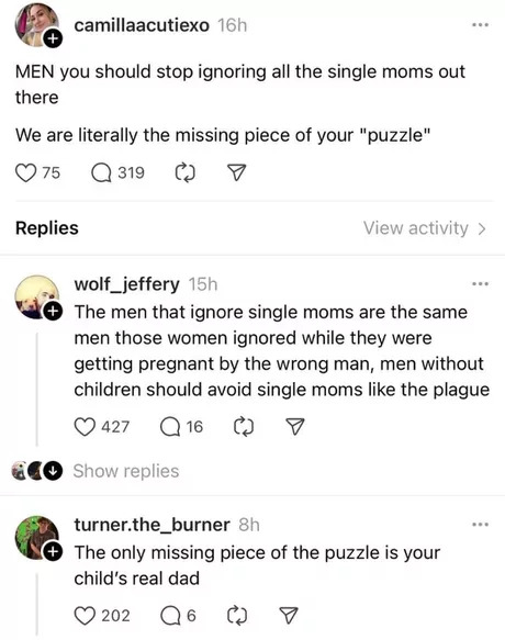 >>217797773My chad brother was banging a single mom a couple of years ago. She was fat and didn't have a job. I thought he had gone crazy. Her parents were nice but she was a mess and her brother was unemployed as well and had been caught stealing a number of times. Luckily he came into his senses and dumped her fat fucking ass and is now dating a fit younger doctor.