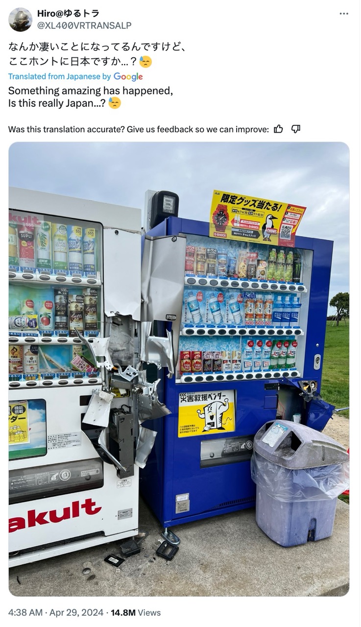 >>217812537>It's faster, easier, and leaves the machine mostly intact so they can be easily repairedHow many levels of retardation are you currently on anon?Why would a criminal think about leaving the machine "mostly intact"?