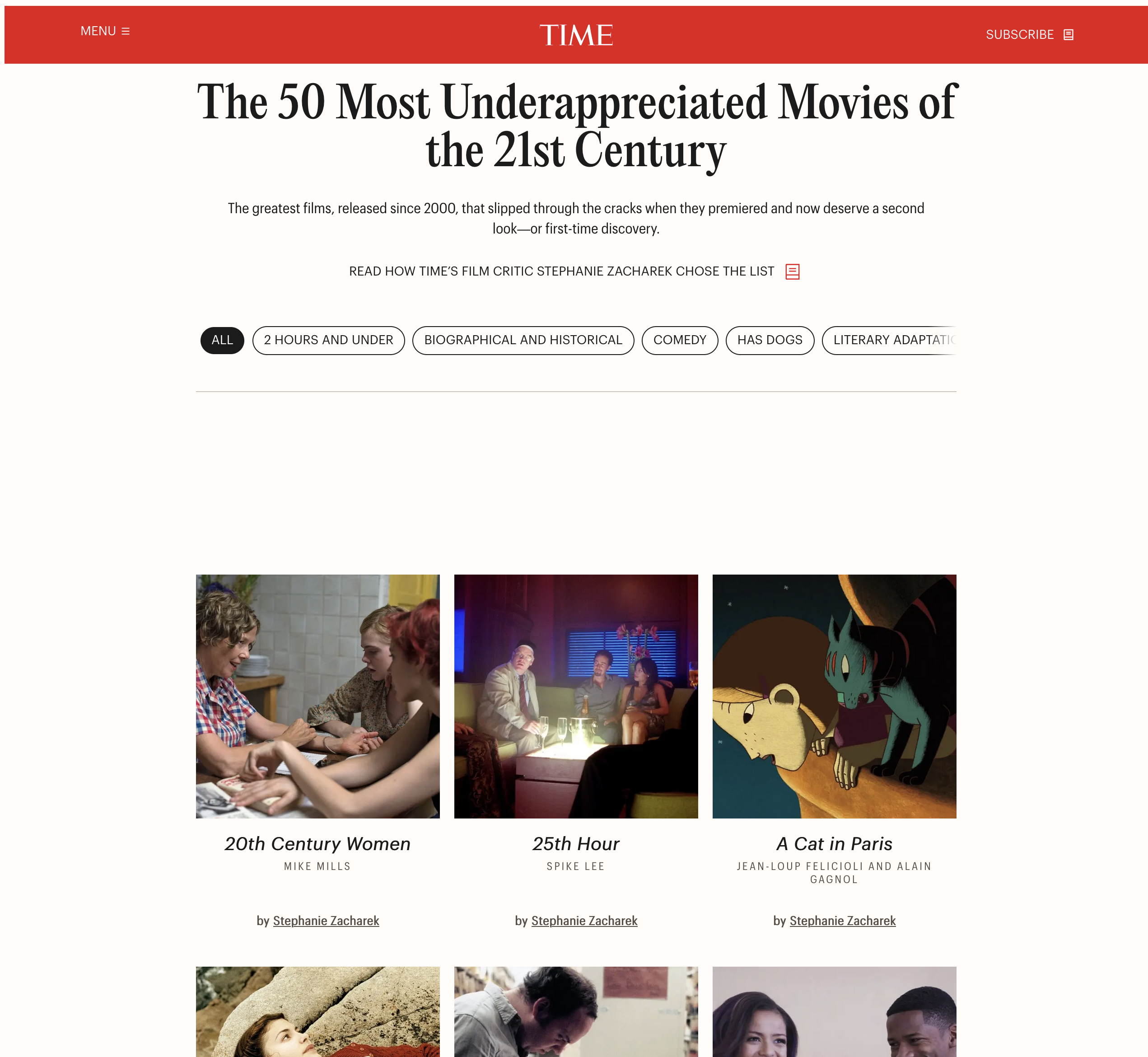 https://time.com/collections/50-most-underappreciated-movies/20th Century Women25th HourA Cat in ParisA Very Long EngagementAmerican SplendorBeyond the LightsBreakfast on PlutoBright StarControlCQDark SkiesDolemite Is My NameDreamin' WildDrumlineFantastic Mr. FoxFemme FataleGhost TownGood Morning, NightHamlet (2000)Head-OnI Could Never Be Your WomanI'll Sleep When I'm DeadIdlewildJane EyreMasked and AnonymousMaster and Commander: The Far Side of the WorldMiss JuneteenthMonkeyboneMudboundMustangOnly Lovers Left AlivePassingPeterlooPhoenixShortbusSomewhereTalk to MeThe Beat That My Heart SkippedThe Diving Bell and the ButterflyThe Electrical Life of Louis WainThe Magic FluteThe Man from U.N.C.L.E.The Painted VeilThe ShallowsThe Skeleton KeyThe Taste of ThingsTinker Tailor Soldier SpyTop FiveWolfwalkersWuthering Heights>Master and Commander>Fantastic Mr. Fox>underappreciated