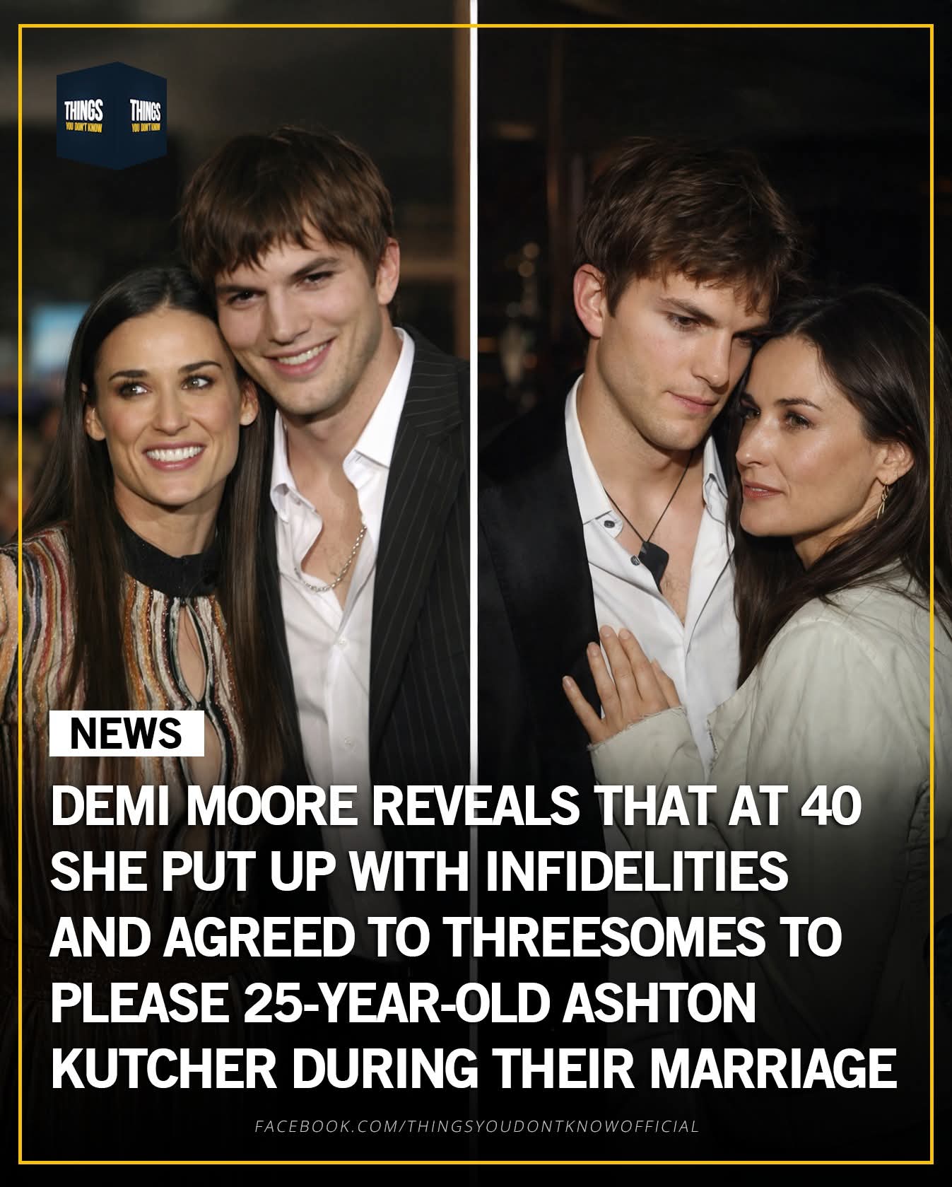 >>217822171>At 40 even as a celebrity with tens of millions of dollars, without a husband or children she's forced to be sidepussy to some kid and watch him blow another (presumably not 40 y/o) woman's back out in bed. That's not really it. 40 for the Hollywood elite is not the same as a regular 40. They have zero stress and Demi Moore was everyone's dream girl growing up. She could have anyone she wanted (within reason) and chose Kutcher. Women put up with affairs and 3somes all the time, you can't derive any broad life lesson from it lol. The problem really with him marrying a 40 year old woman is she's 63 now and he's 48, so now at this point it becomes a bit of a problem.