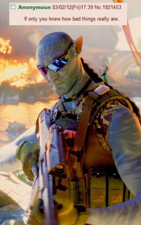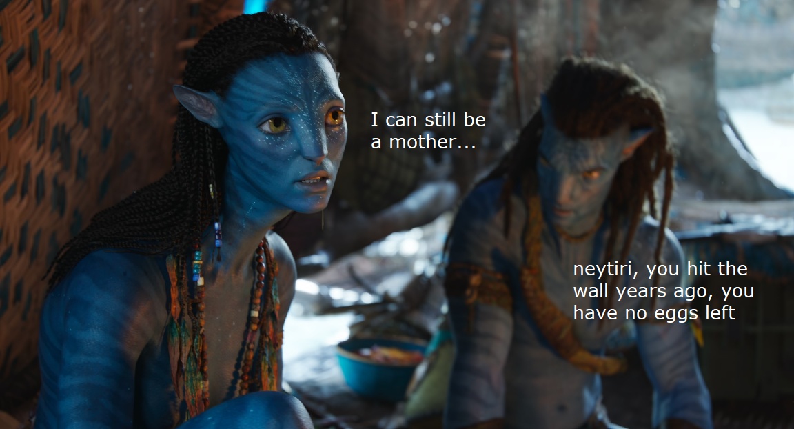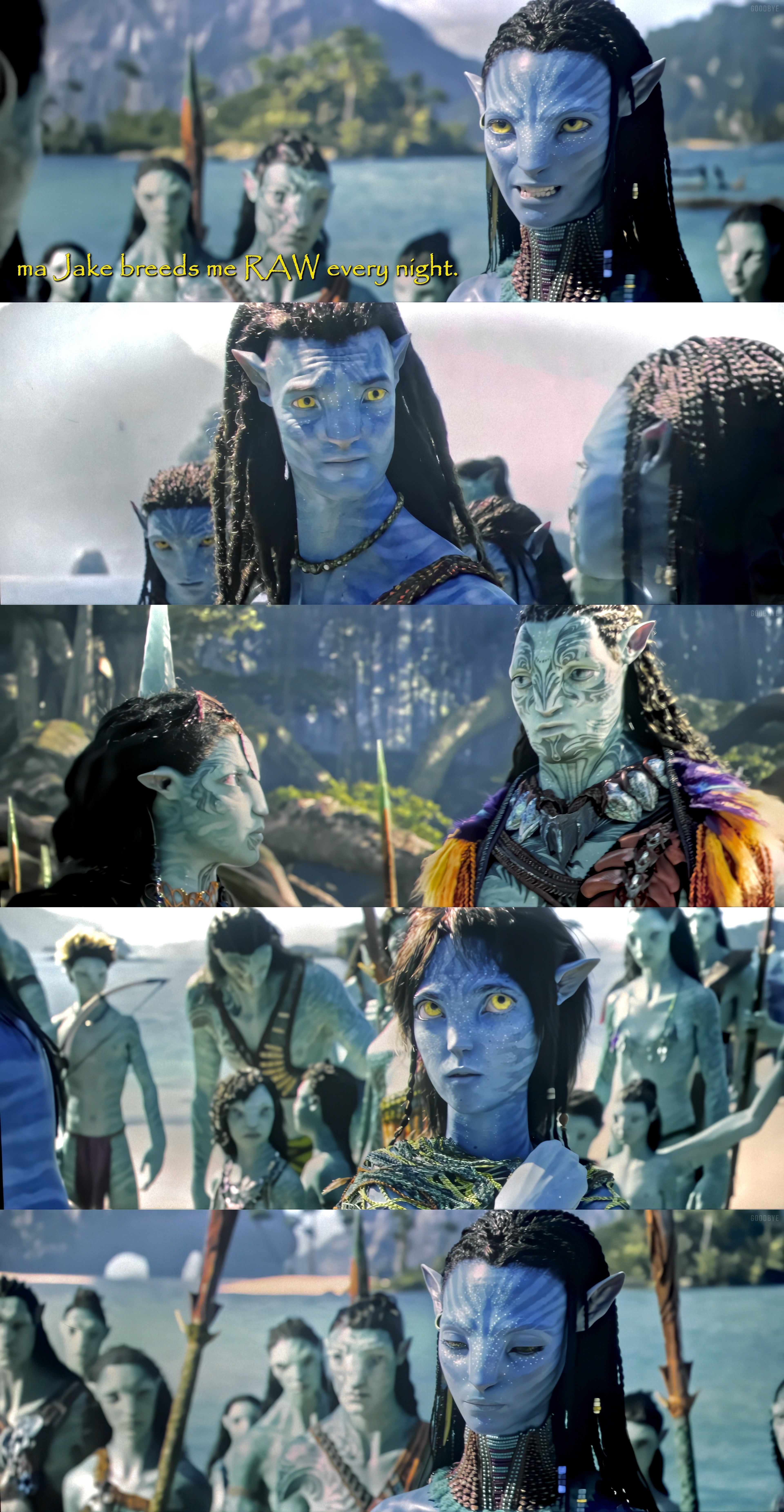 I came here to tell you zoomers that I watched the first Avatar when it came out, shitty 3D glasses and popcorn, the effects were dazzling at the time and they still hold up which says a lot about the kind of quality I experienced. It was spectacular. But the plot, for fuck's sake, the plot, Cameron is such a fucking hack. The love plot was so fucking tacked on. I can't believe they tailor made the whole ayy body thing to cram a shitty love plot into this stupid fucking insipid fart of a Pocahontas ripoff. Why not be more daring, why not show 10 foot tall Neytiri ride wheelchair guy on the floor while cradling his head against her relatively enormous breasts? What the fuck is "I see you", what kind of shitty line is "I see you" that's not romantic, that's a fucking cringe meetup with some chick you met on a forum in 1996. Except this chick bangs your fucking profile picture. God, I would've been raving about that movie every day to this very day in this very post, instead it's fucking Samurai Tom Cruise shit again. I am so mad when I think about Avatar