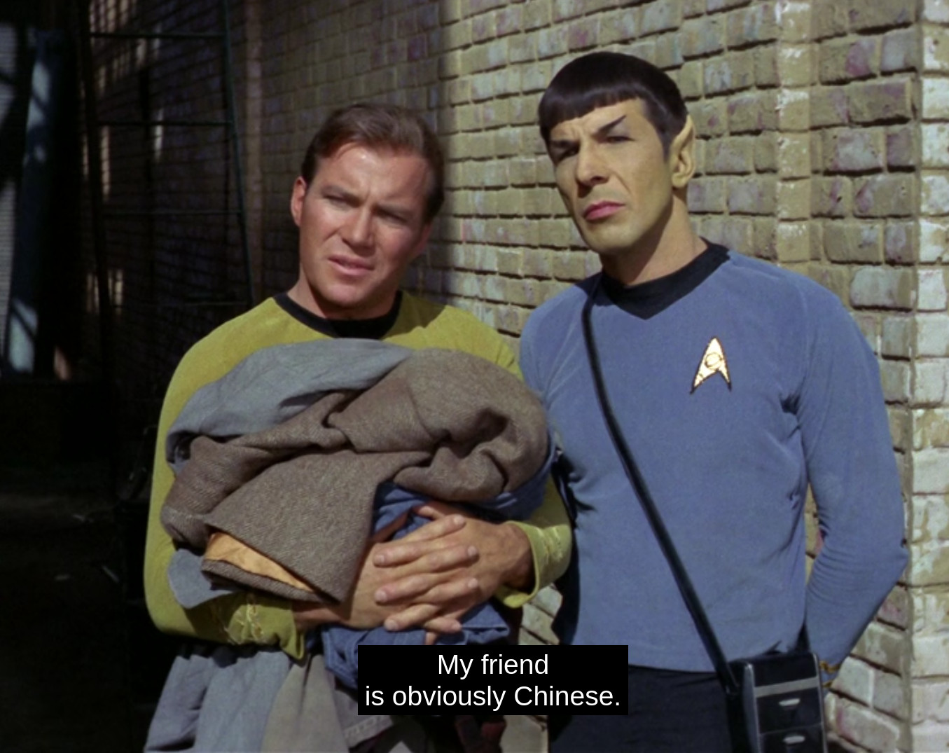 I went to a bar tonight, and I asked a basic bitch white woman what the appeal of Taylor Swift is.She said she was a good lyricist.I started to cackle like an insane person in their face and then I left.Any Star Trek episodes about alienation from your own kind?