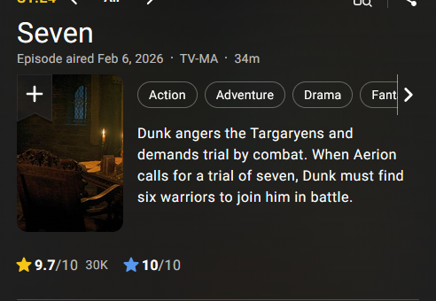 >>217887869Word is spreading that Dunk is good. The same thing happened with HOTD season 1 - picked up speed as the season progressed.