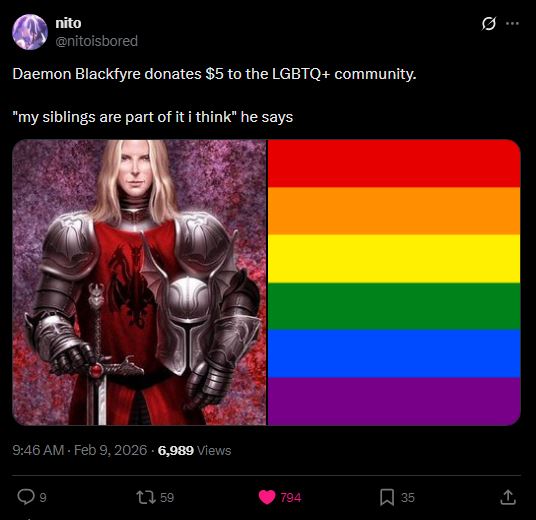 >>217891147Nah, S2 went really above and beyond with the MUHWOMEN tripe.Both Rhaenyra and Alicent were kinda sorta entitled assholes, at least somewhat, in S1.In S2 they entitely became victims-of-the-patriarchy who didn't manage to broker a sensible peace only because MENBAD prevented them from doing it.Same shit goes for any other female character, Myseria, Rhaenys, all brave and just women who only had the best for the people in mind.Also throwing in some GLGkissykissies for good measure.