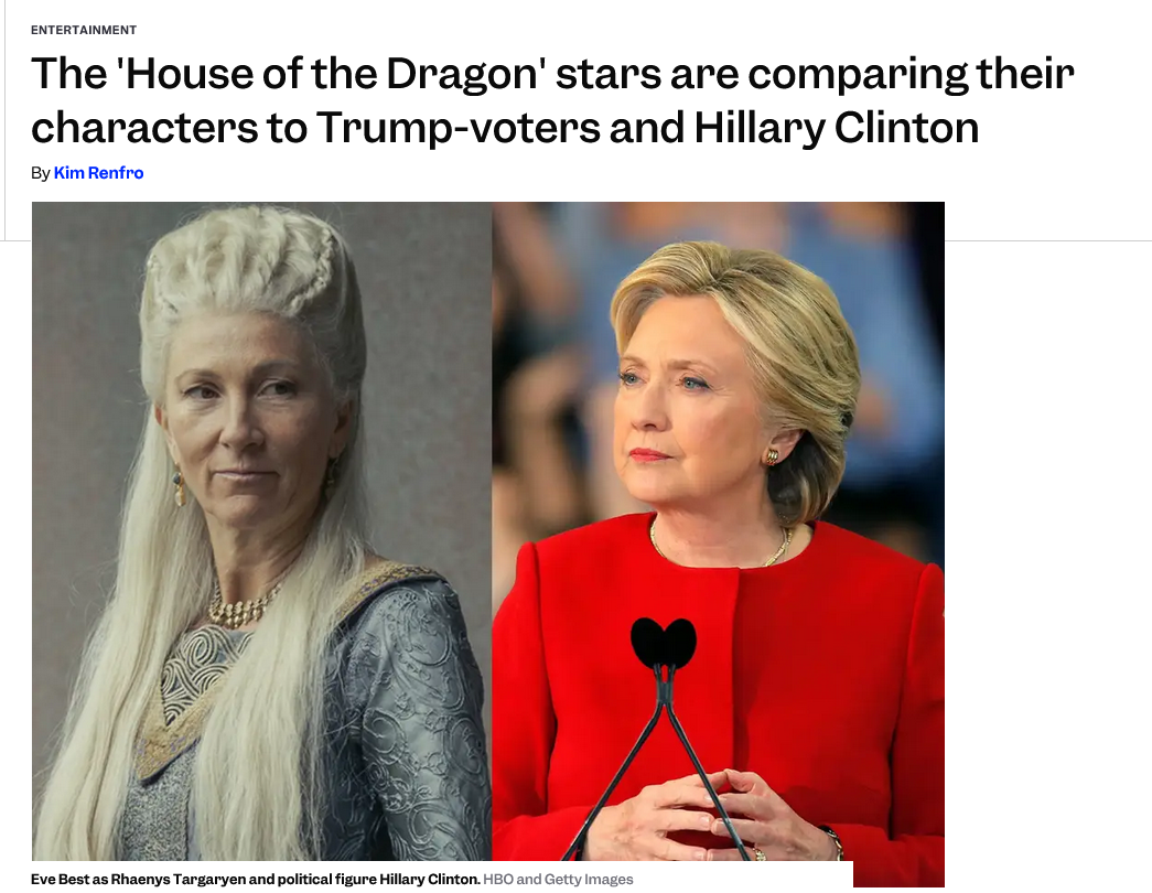 >People not realizing that the Dance of the Dragons has always been Rhaenyra vs Alicent (at least the show Dance). It all started with those dresses...