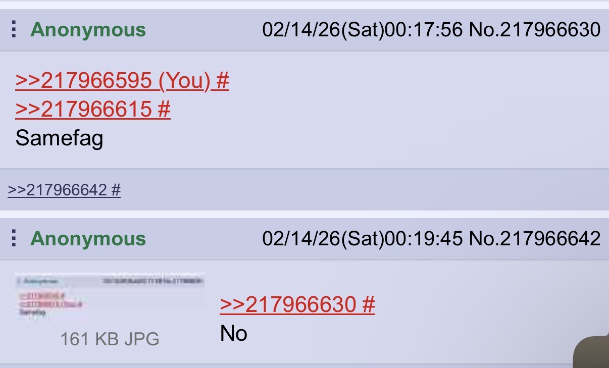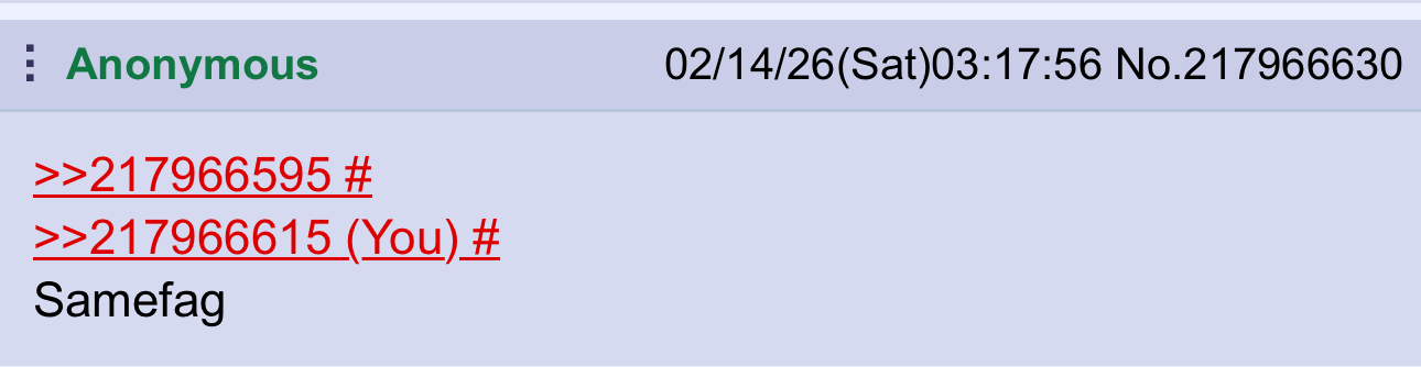 >>217965706>>217965715You have my fondness and esteem. May your day be blessed.