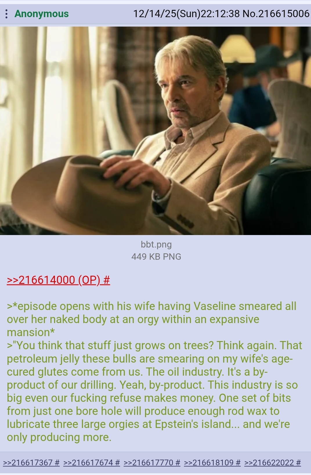> WHAT IS LANDMAN ABOUT?BBT doing picrel everyday and still having time to give his teenage daughter a bath and 'tucke her in' at night