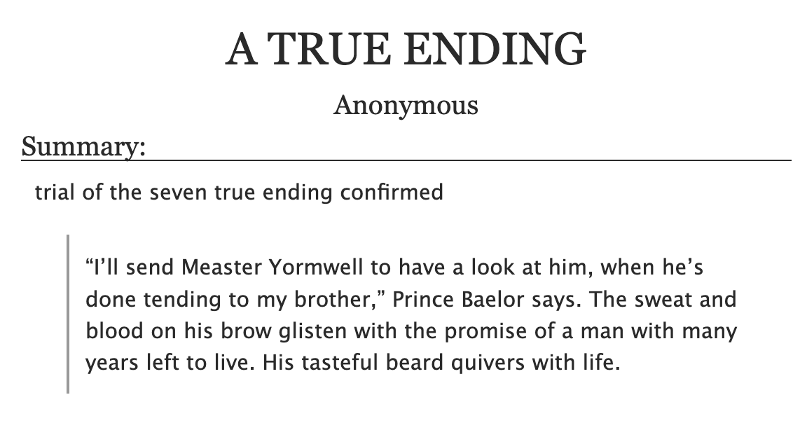 >>218022845The oldfag was kicking Daeron’s immobile body in the mud successfully distracting one of the kingsguard to come save the prince