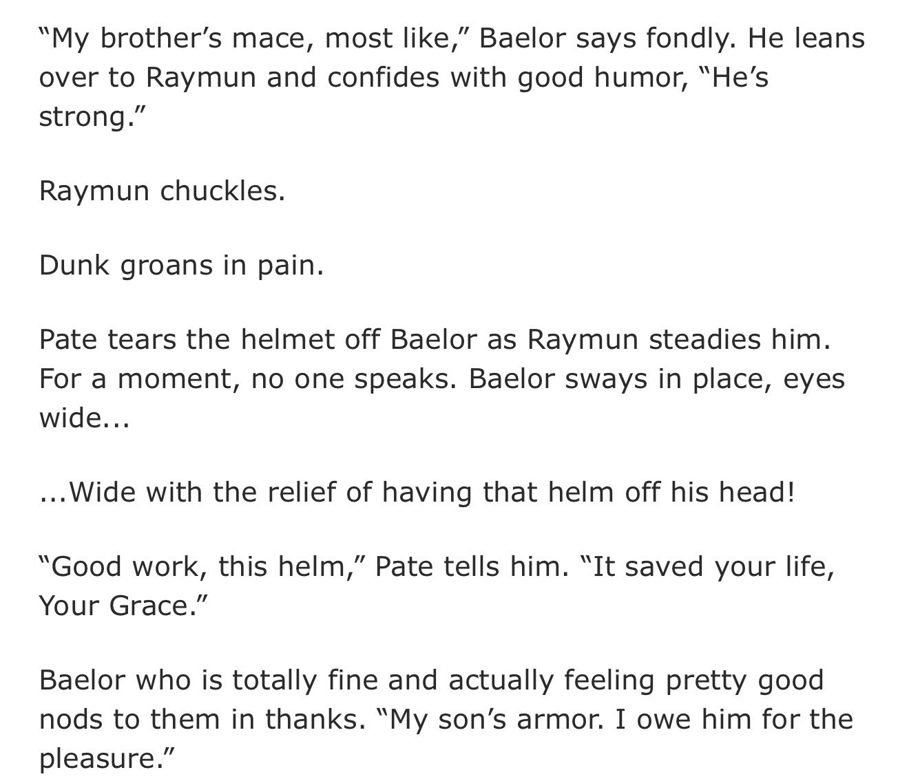 >>218022386>Helmet wasn't caved in, visible as he fell>Maekor clearly punched himWho killed Baelor?