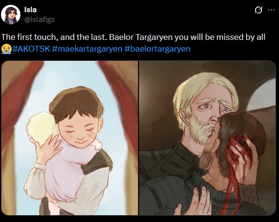 >>218035695>>218035751That man looks too old to be Aerys, but then again Maekar looks old as fuck too for a 35 something year oldWho do we think is the woman? The only Targ female alive and that old during this period is Elaena, but I don't want to think it's her because she's missing the golden streak