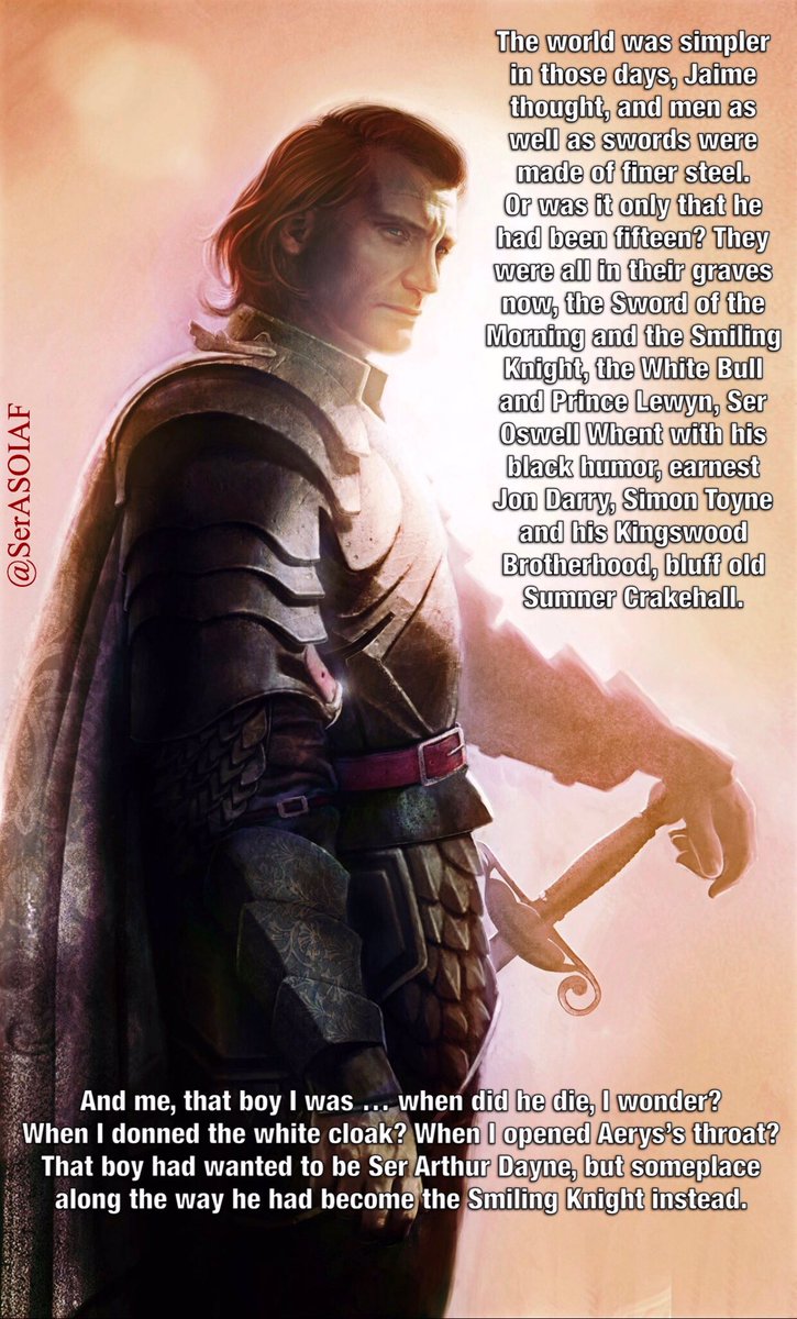 >3/7 abandon King Aerys to go fucking around in Dorne>2/7 turn traitor and join Robert's regime (one of whom kills the King he is sworn to protect)>1/7 keeps a paramour, betraying his oath (and all the other Kingsguard kept it secret)>1/7 said it was fine that Aerys was raping and abusing Rhaella >The other two did literally nothing of note Amazing Kingsguard. Maybe the worst in history. Jaime just has major rose tinted glasses. Btw, Arthur's main feat is either 1) being fought to a standstill by some random bandit Knight until that Knight's sword breaks, and winning only because you had a magic sword or 2) toying with and torturing someone with your magic sword until their sword breaks. He was an evil fuck.