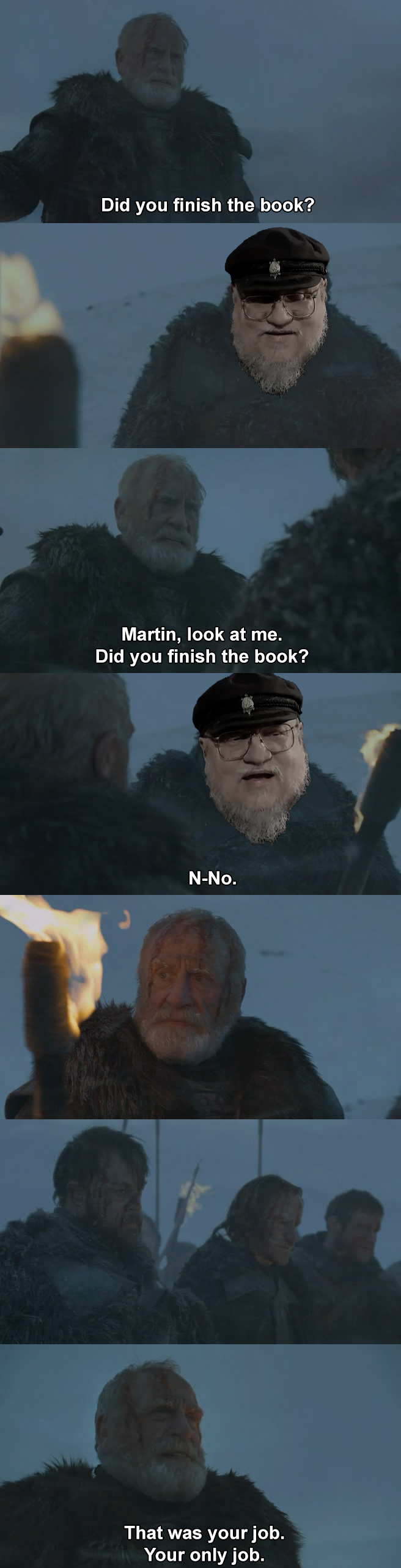 Do great series have generals that host the same posts like TAOOBA and Mario Naharis again and again and live whole days before next bake?i think not/got//hotd/ wasn't gifted with writing or restraint, /got/ was arrogant, lazy/hotd/ whored and pandered, it was a hard series not to hate by the end, ruled the catalog for nigh on 16 years and it was still forgottenwhat chance do i have, truly?/got/ was good to me, /hotd/ weren't family to me but it kept me like we werethey raised me be an honorable general and all these other generals still can't even remember his namehis name was /got/hotd/, and i am his legacytoday for a final timewe will show the catalog what his hand has wrought