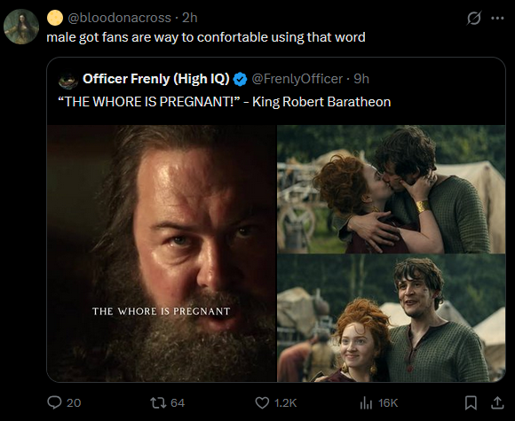 /got/ should learn to watch their languageIt makes me quite uncomfortable how you people refer to women in these shows