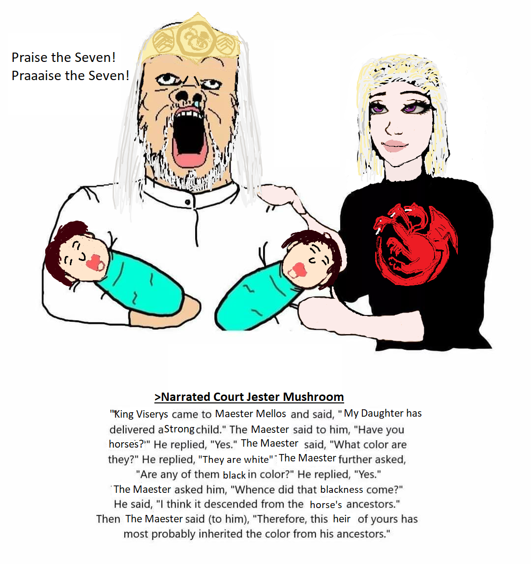 >>218162373Yes I know, Dunk also knows by the fact she's been fucking Dondarrion that the child is not Raymun's, that's the joke